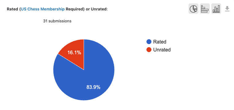 Relatedly, the results of our recently-concluded club survey may be seen below and made clear people prefer that our next rated event have a longer time control, so the quads will be played at G/45;d5, one game per evening. In addition to the data shared below we received a large number of helpful comments and suggestions so we’ll try to incorporate all that we can in upcoming events — thank you to those who took the time to complete the survey! Regards,